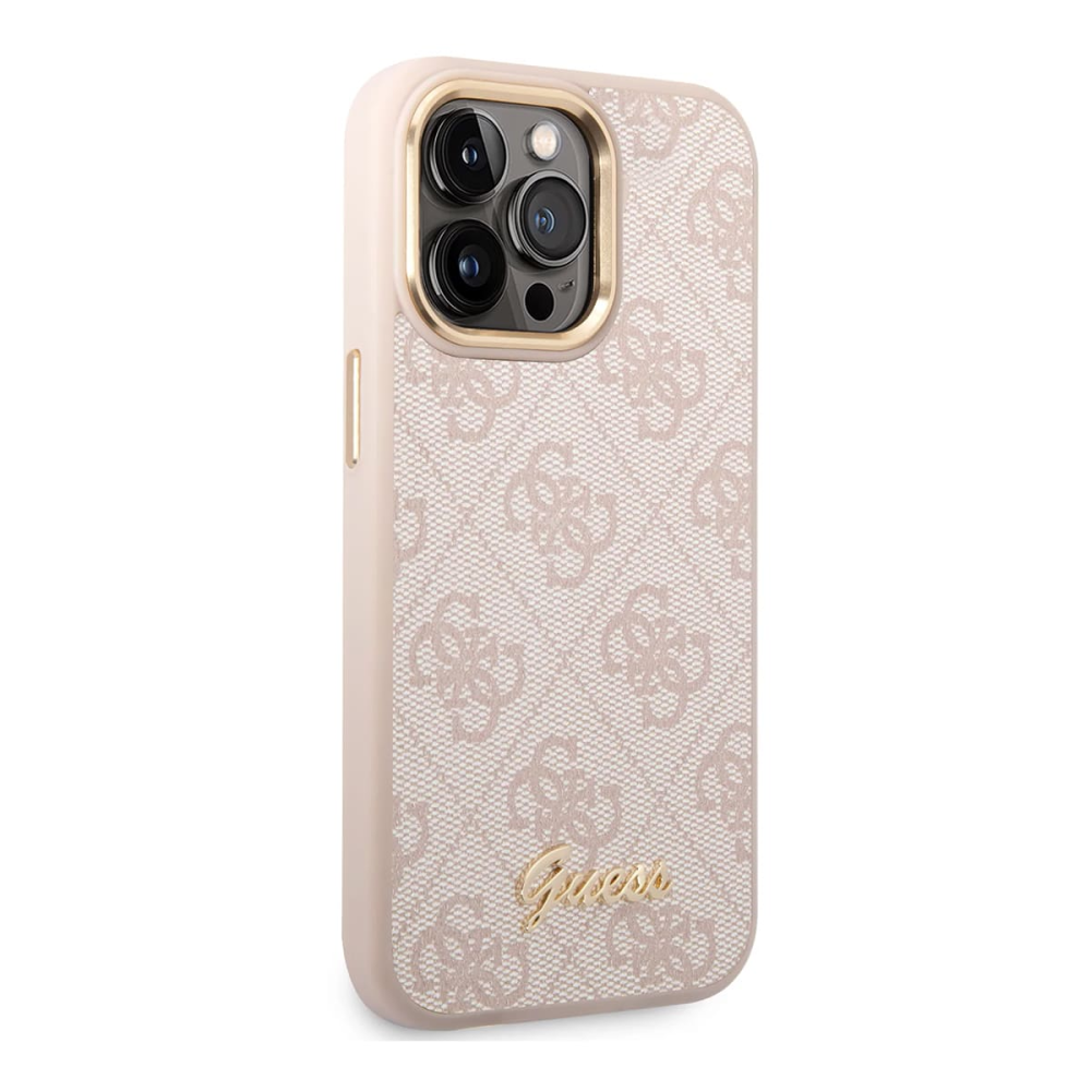 Чехол Guess для iPhone 14 CG Mobile PU 4G Script metal logo Hard (GUHCP14SHG4SHP) Розовый - высококачественный смартфон с передовыми технологиями.