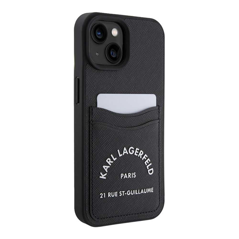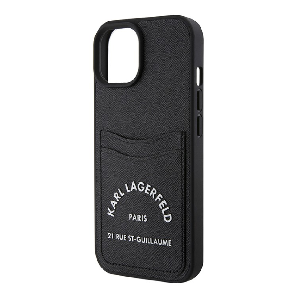 • Чехол Karl Lagerfeld для iPhone 15 Cardslot PU Saffiano RSG 3D rubber logo Hard (KLHCP15SSAPRSGK) Черный